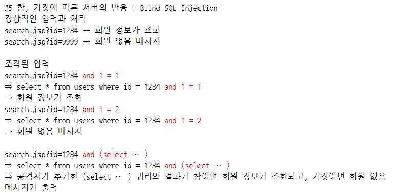 - 동적쿼리를 사용해야 하는 경우, 입력값 검증 후 사용 = 쿼리 조작 문자열 포함 여부를 확인 후 사용